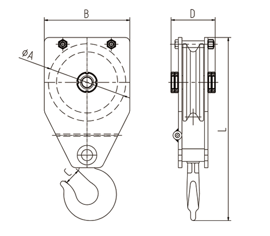 1、开口设计,方便挂钢绳。 2、侧板内侧有钢丝绳防脱装置,可以满足并下工作需求。 3、体积比国标起重滑车小,井下移动方便。