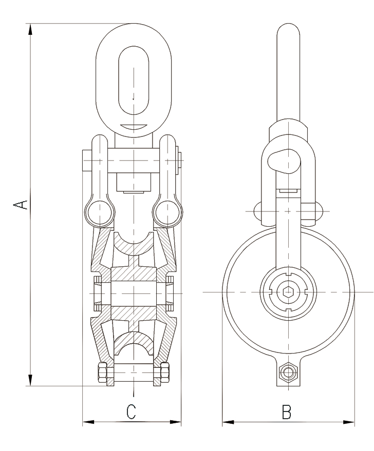 1、可适用于钢丝绳或绳索的拉吊。 2、此滑车开口设计,可侧面放入钢丝绳,省时省力。 3、采用铸钢轮,经久耐用。 4、轴套采用纯铜套。