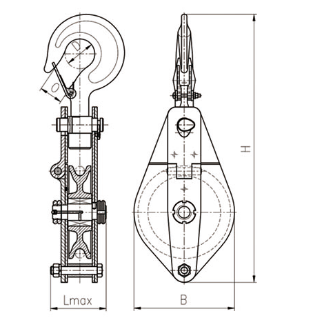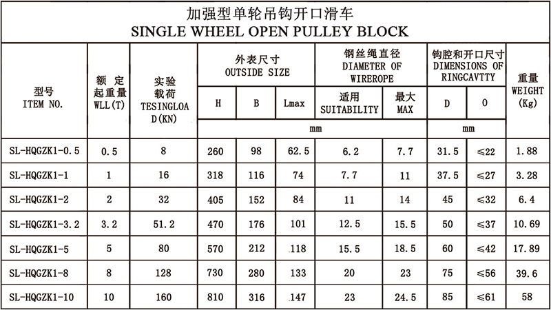 加强型单轮吊钩开口滑车